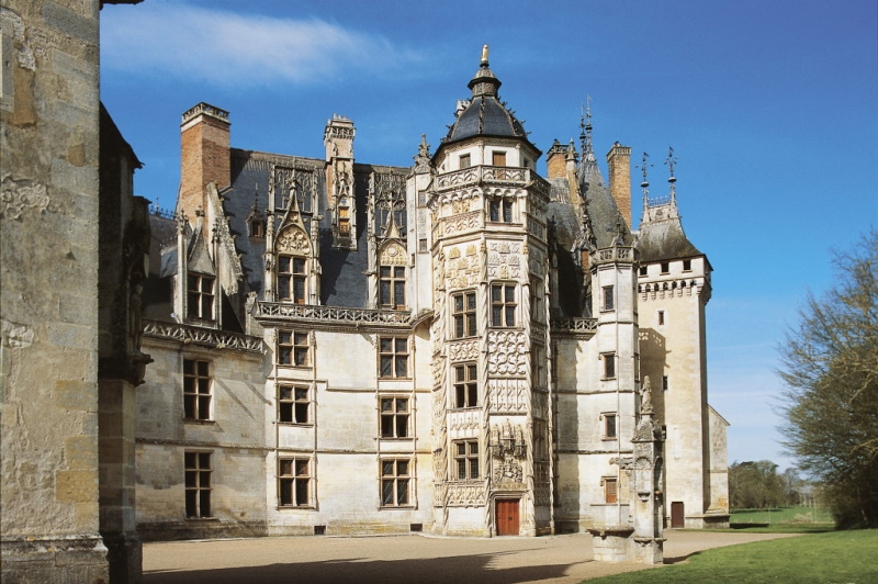 ロワール河を見下ろす小高い岩盤の上に立つアンボワーズ城の歴史は古くはガロ・ロマン時代にもさかのぼりますが、最盛期を迎えたのは15~16世紀のこと。イタリア遠征でイタリアの芸術と文化に魅せられたシャルル8世は、家具や美術工芸品などの戦利品とともに建築家、広告か、造園家などを連れて帰り、増改築中のアンボワーズ城にイタリアの風を吹き込みました。しかし、かなり白の工事が進んでいたためにイタリア芸術をあまり反映させることができず後のルイ12世、フランソワ1世の時代にイタリア・ルネッサンスが取り入れられました。フランボワイヤン・ゴシック様式のサン・テュベール礼拝堂とテラスやミニームの塔から見渡す眺望などが見どころ。また悲惨な事件として知られる、旧教徒が新教徒を大量虐殺したアンボワーズの陰謀の舞台にもなりました。城から東南約1キロには、レオナルド・ダ・ヴィンチがフランソワ1世に招かれて晩年を過ごしたクロ・リュセの館があります。